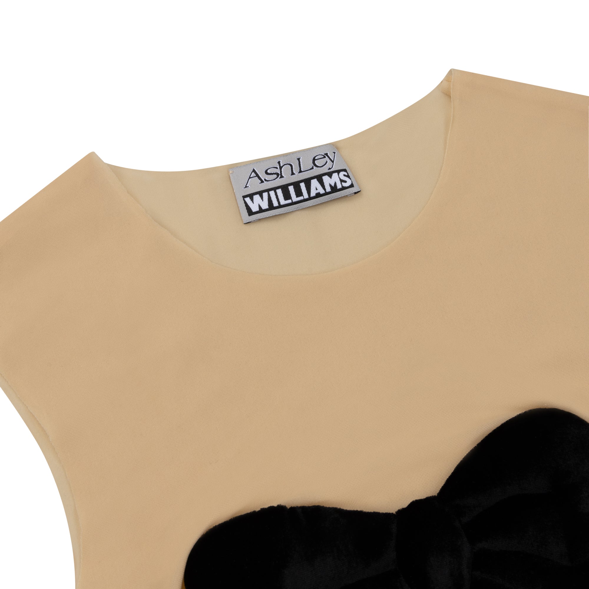 NUDE MESH WITH BLACK VELVET BOW
