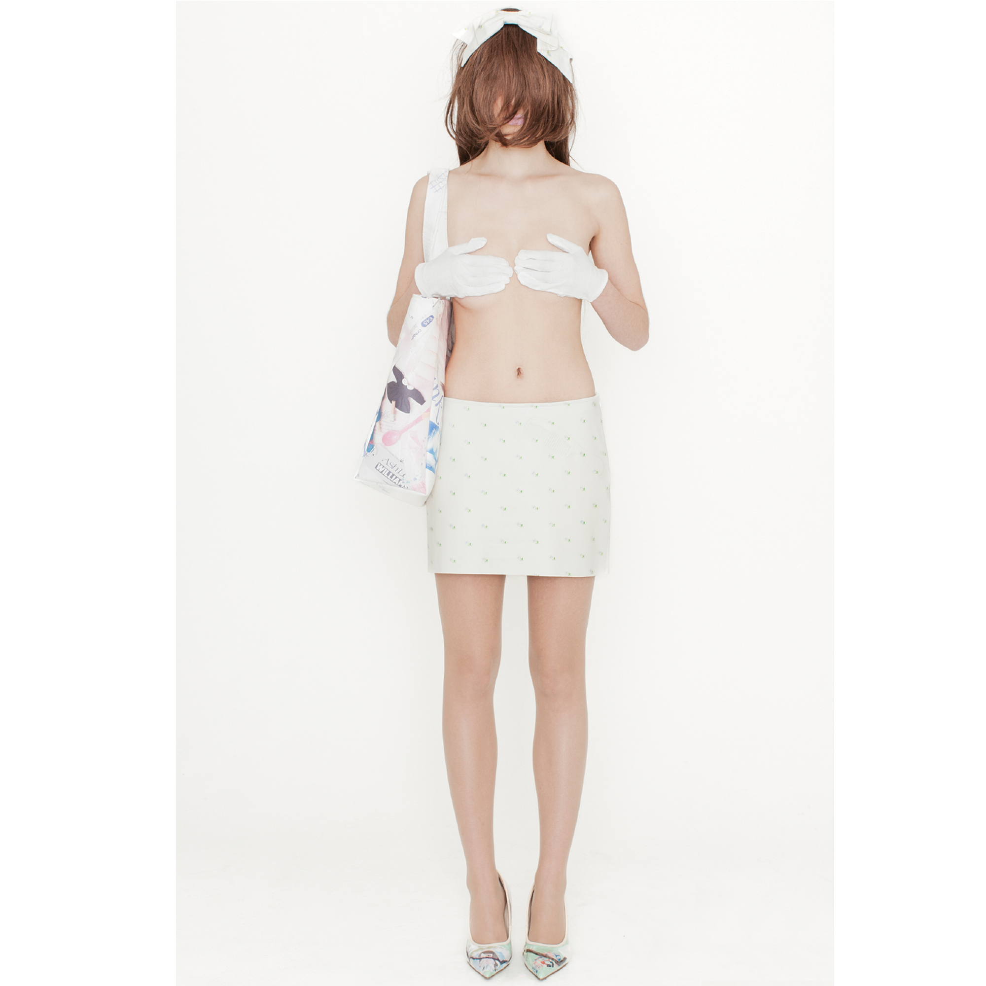 BOW HAIR BAND WITH TISSUE PAPER PRINT
